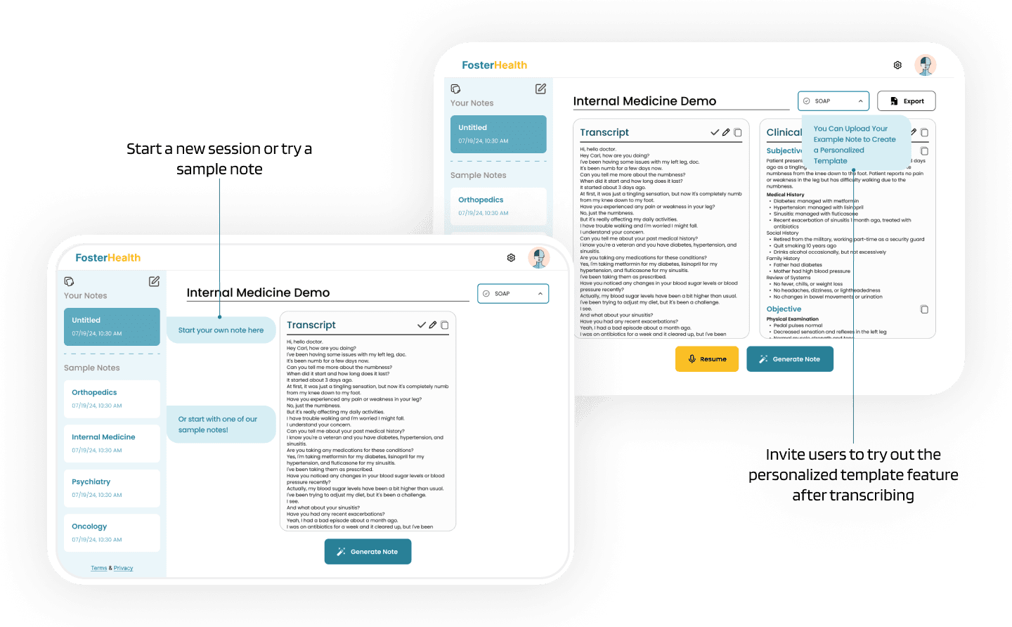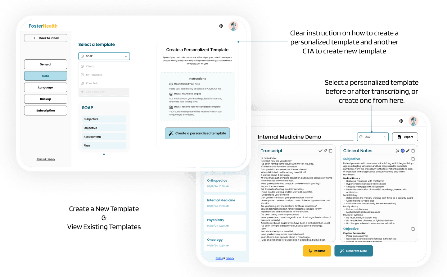 Designed a customizable feature that enables doctors to create self-defined templates based on their past medical notes, allowing Foster to learn and generate AI-powered drafts that match their tone, structure, and writing style—while giving them the flexibility to edit the templates as needed.