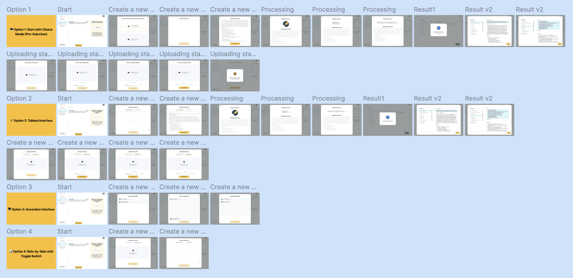 After identifying key pain points in the current documentation process - particularly around editing time and transcription accuracy, we moved into the ideation and prototyping phase. We developed a series of low- and mid-fidelity wireframes to explore potential solutions aimed at streamlining the editing workflow and enhancing clarity in the user interface.