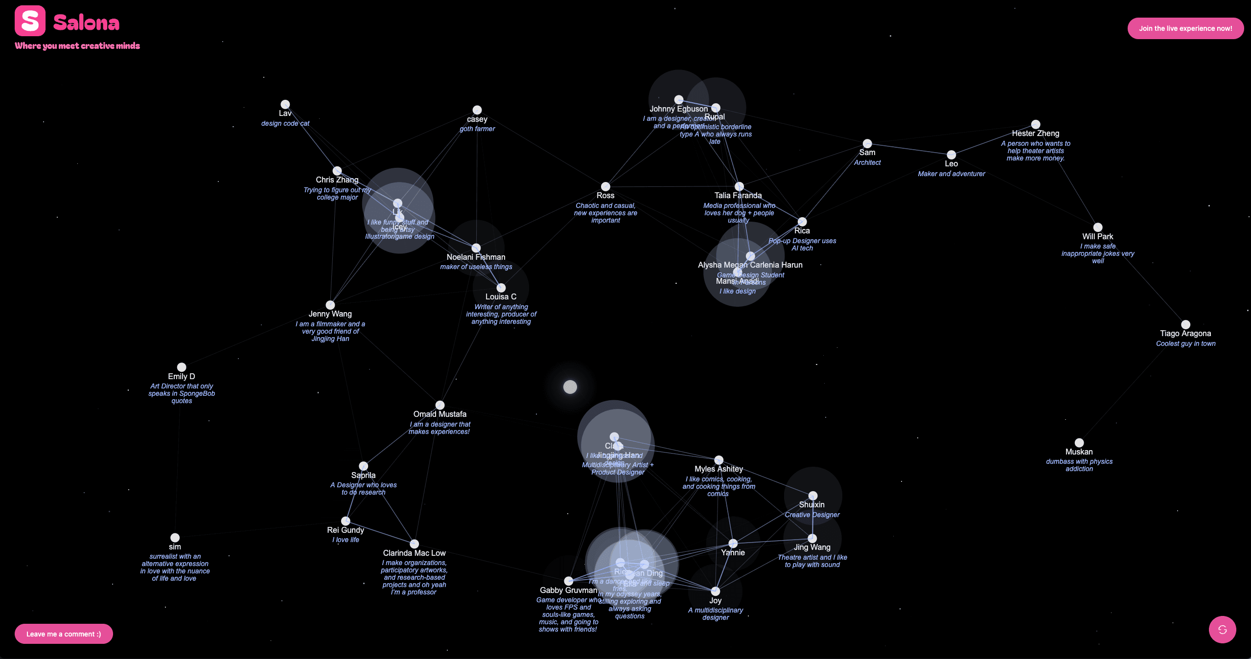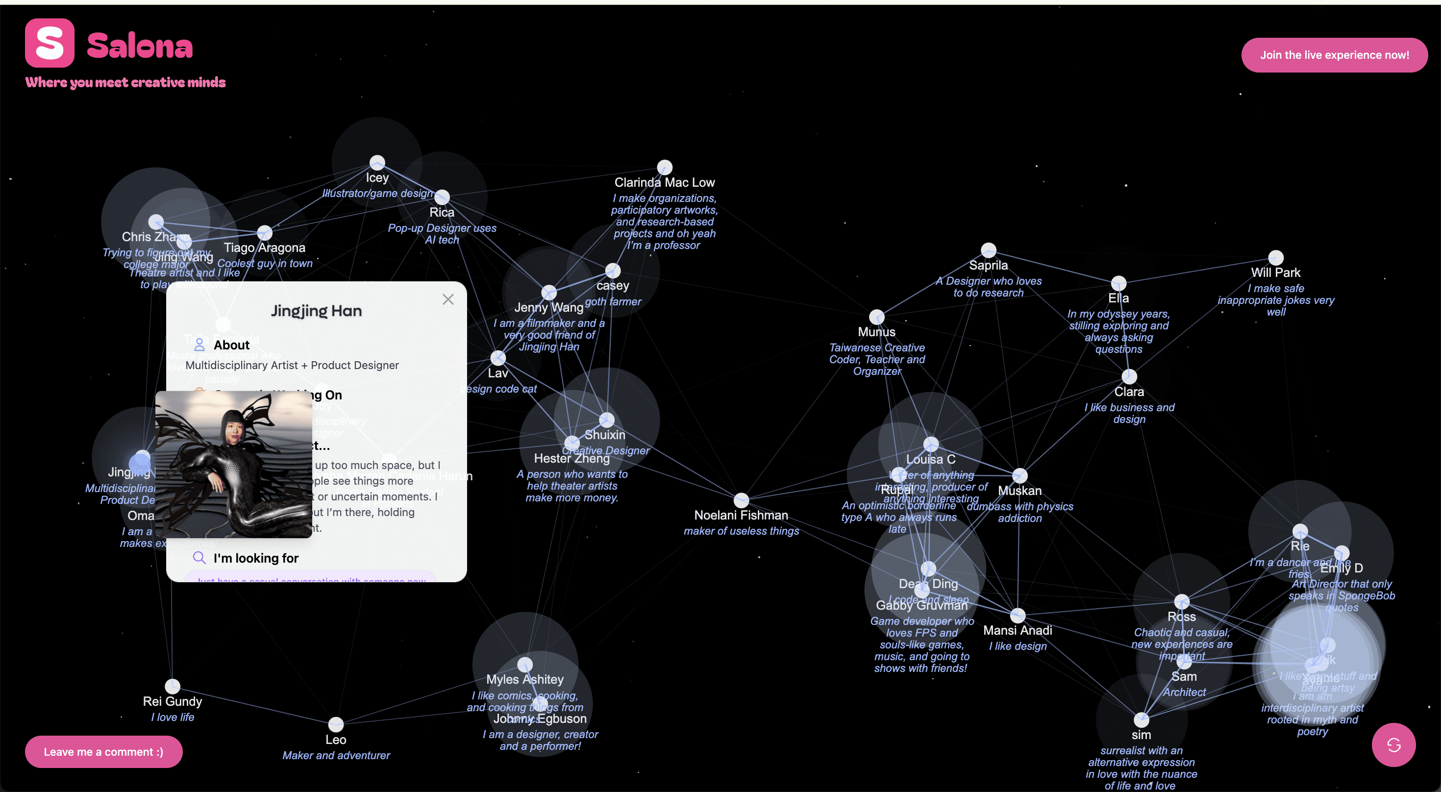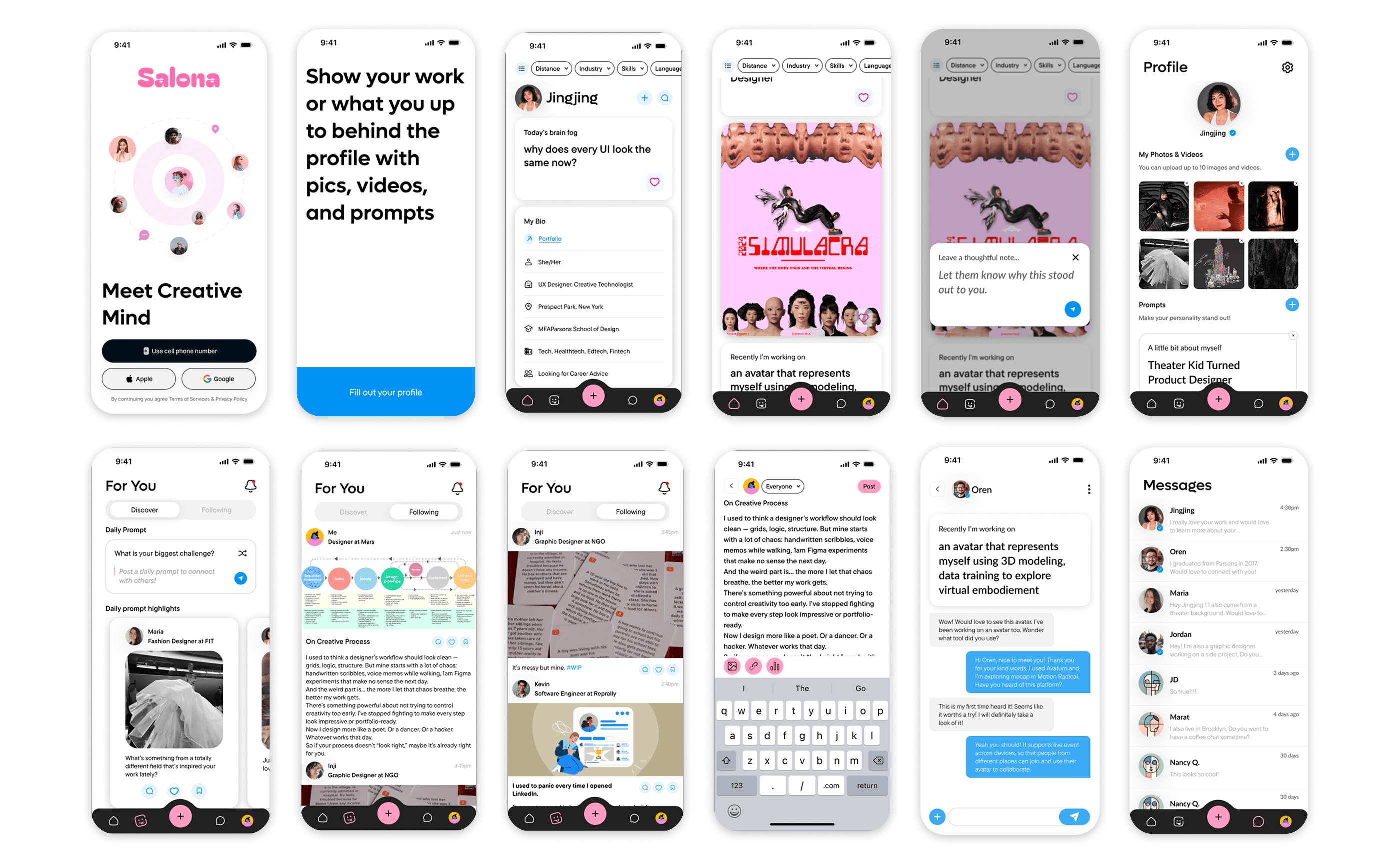 Salona isn't just a networking platform—it's a design proposition that asks: How might technology better support the psychosocial dimensions of creativity, labor, and becoming?