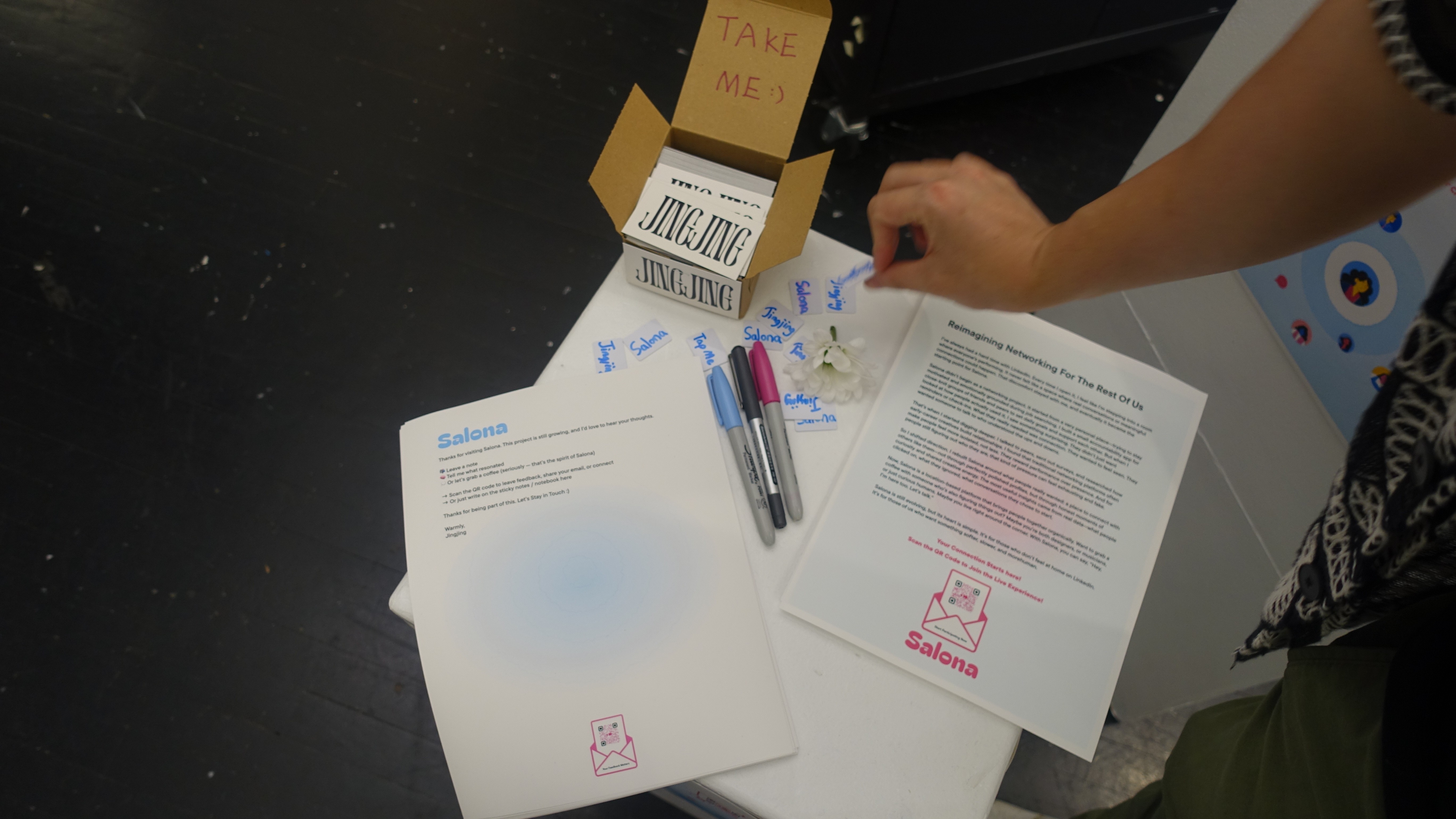 To bring Salona off the screen and into lived experience, I created an interactive pop-up at my MFA thesis show. This wasn’t just a demo — it was a prototype for a social moment.