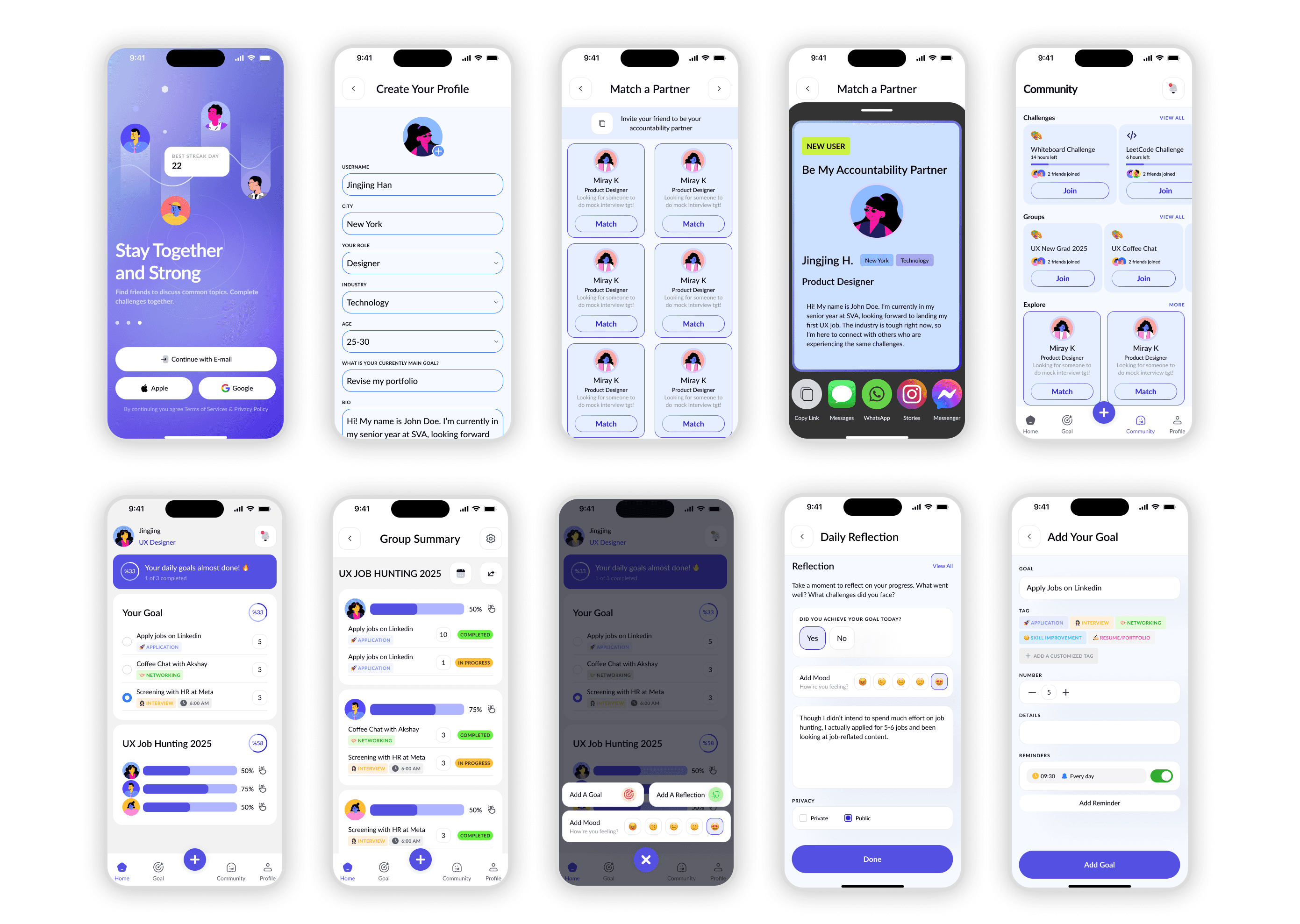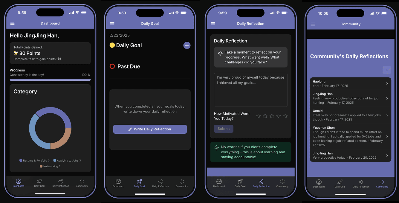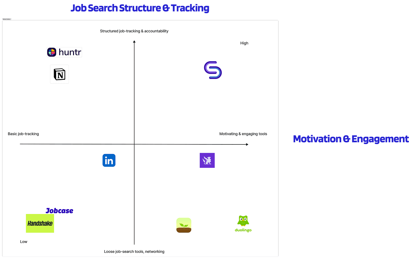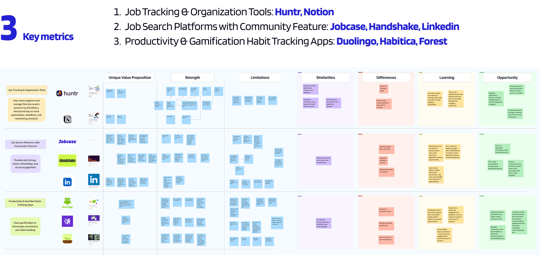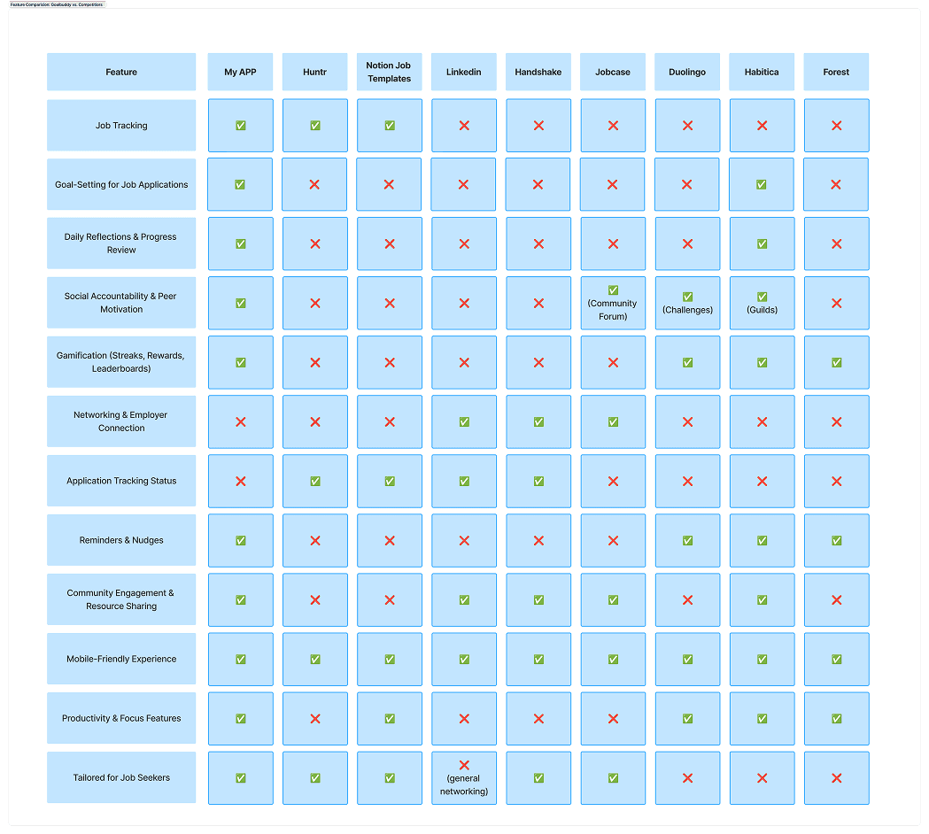 In the early stage, Salona began as an accountability app to help job-seekers stay consistent and motivated. I analyzed tools that supported individual productivity and peer support.