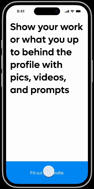 Users discover one person at a time—intentionally slowing down the experience to encourage real engagement over superficial browsing.